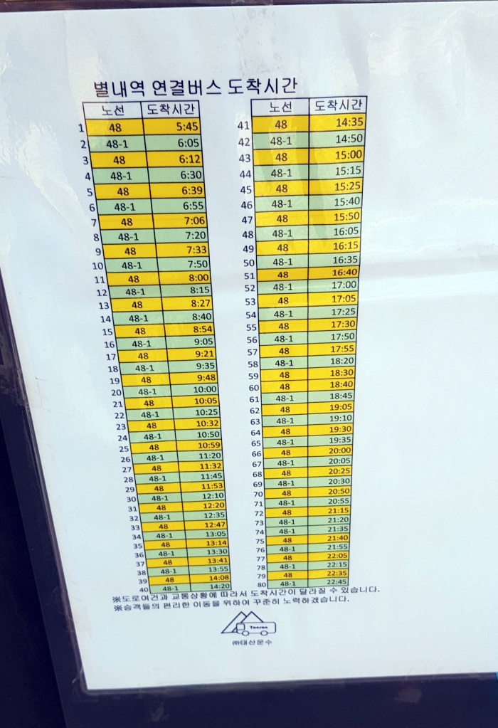 2) 배차간격이 조금 넓은 점 주의하시기 바랍니다.