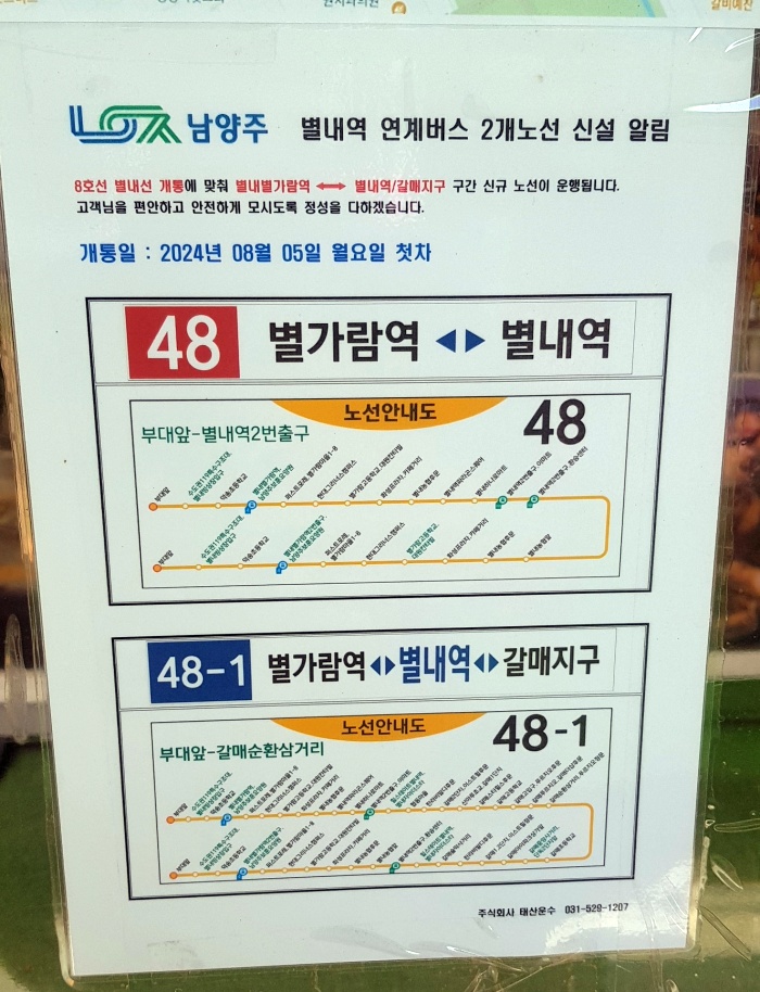 남양주 48번 마을버스(별내빙상장/별내에너지발전소-별내별가람역-별가람고-별내 카페거리-별내농협 본점-별내역)